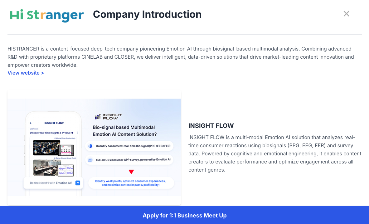 Through U-KNOCK in USA, HiStranger will participate in the International Content Investment Forum and one-on-one business meetings with studios and investors in Los Angeles. These sessions will focus on co-development and investment opportunities for leveraging Emotion AI in the global content ecosystem.