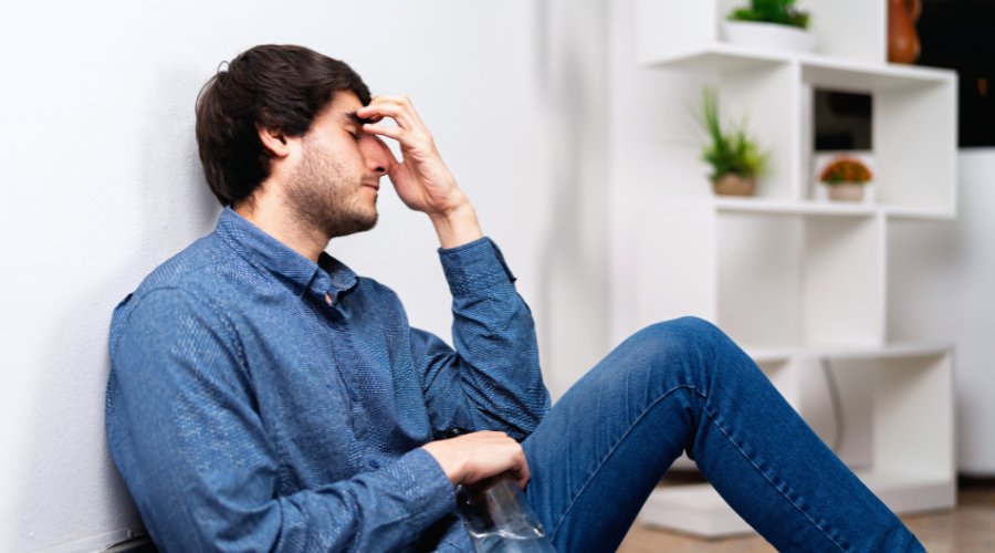 Man holding head in hands shows the concept of Catalina's acclaimed services include Failure to Launch programs for young adults in Tucson and across Arizona