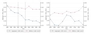 Second, the decline in the aggregate labor share over 1998-2007 is not due to firms with high initial market share systematically reducing individual labor share, nor is it caused by firms with low initial individual labor share expanding their market share. “Instead, it’s primarily driven by a redistribution effect, where firms gradually reduce individual labor share while simultaneously gaining larger market share,” Zhou shares. “Analysis of the post-2008 period indicates that this micro-level mechanism of joint changes in individual labor share and market share persists and applies to different trends in labor share changes.”