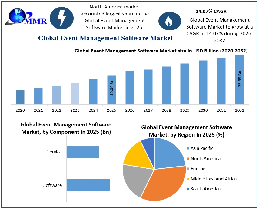 ROCKVILLE , MD, UNITED STATES, March 24, 2026 /EINPresswire.com/ -- The global Event Management Software Market, valued at USD 10.34 Billion in 2025, is entering a high-velocity optimization era, projected to expand at a 14.07% CAGR through 2032. This growth is fundamentally redefined by the integration of Artificial Intelligence and Cloud-native architectures, transitioning the industry from manual planning tools to automated engagement engines. As organizations prioritize real-time data analytics and seamless API connectivity, the demand for scalable, ROI-centric platforms is surging. Maximize Market Research highlights that this evolution is creating a USD 25.99 Billion opportunity, driven by the need for hyper-personalized attendee journeys across hybrid and in-person corporate landscapes.— Maximize Market Research