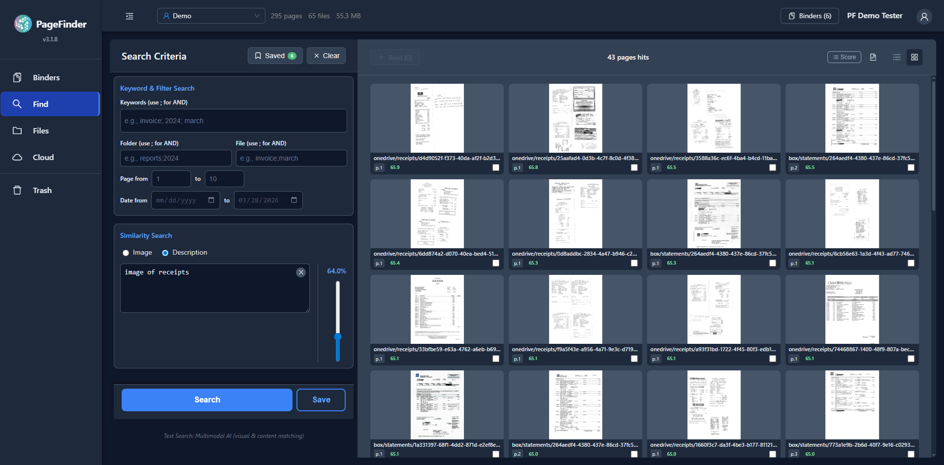 A core feature of the platform is the Precision Page Binder, which lets users pull together receipts and invoices from multiple files into one organized set. PageFinder’s AI then analyzes only those pages—making it faster to total expenses, extract key data, and prepare records for filing.